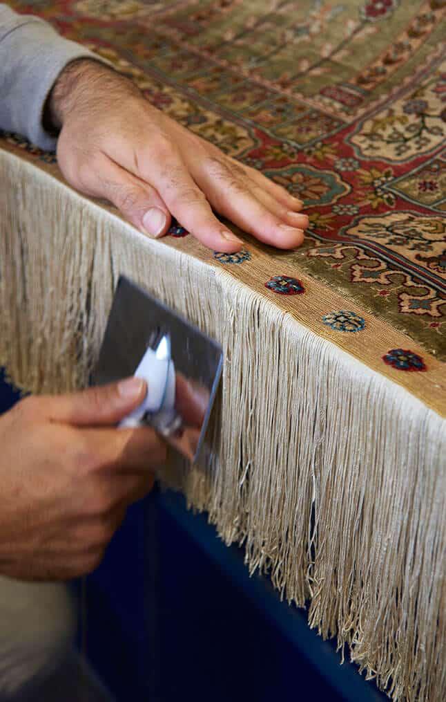 Nous réparons et renforçons les lisières pour préserver la structure et l’élégance de vos tapis.