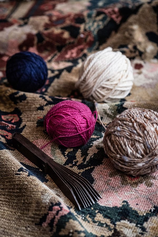Mais la couleur ne fait pas tout, la texture ne doit entraîner aucune dissonance avec celles du tapis en soins chez nous. C’est pourquoi nous travaillons uniquement avec des laines appropriées, en respectant les techniques de tissage propres à la provenance du tapis.