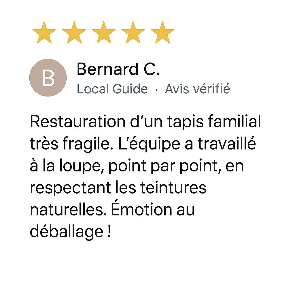 Nous réparons et renforçons les lisières pour préserver la structure et l’élégance de vos tapis.
